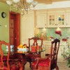 本套餐厅装饰的整体效果比较具有古典气息,空间内的石膏板采用了平顶式的设计,将中间的水晶吊灯凸显的十分唯美,也将下方的实木餐桌照射的更加典雅并附有艺术气息。
