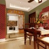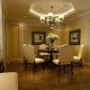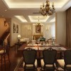 本套餐厅装饰的整体效果比较具有古典气息,空间内的石膏板采用了平顶式的设计,将中间的水晶吊灯凸显的十分唯美,也将下方的实木餐桌照射的更加典雅并附有艺术气息。