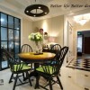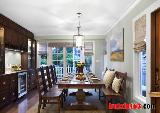 本套餐厅装饰的整体效果可以带给人们一种大气感,空间内的石膏板采用了凹槽的设计,并在中间悬挂了一种铁艺吊灯,在彰显独特设计的同时,也可以使空间显得更加通透,更加明亮。
