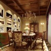 本套餐厅装饰的整体效果可以带给人们一种大气感,空间内的石膏板采用了凹槽的设计,并在中间悬挂了一种铁艺吊灯,在彰显独特设计的同时,也可以使空间显得更加通透,更加明亮。