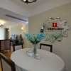 本套餐厅装饰的整体效果可以带给人们一种大气感,空间内的石膏板采用了凹槽的设计,并在中间悬挂了一种铁艺吊灯,在彰显独特设计的同时,也可以使空间显得更加通透,更加明亮。