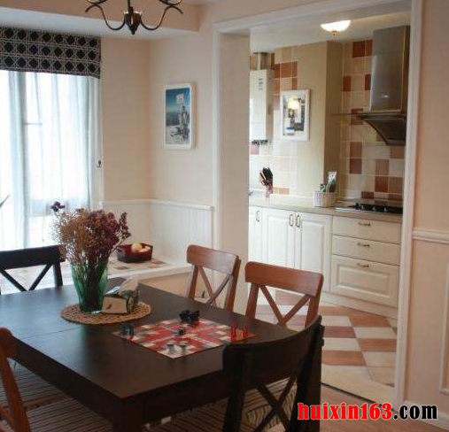 本套餐厅装饰可以带给人们一种清新感,空间内的装饰色调比较淡雅,墙壁上做了格架设计,可以摆放一些业主心仪的小装饰,将个性设计与爱好结合在一起,展现出的设计感则会令人感到无比欣喜。