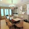 本套餐厅装饰可以带给人们一种清新感,空间内的装饰色调比较淡雅,墙壁上做了格架设计,可以摆放一些业主心仪的小装饰,将个性设计与爱好结合在一起,展现出的设计感则会令人感到无比欣喜。
