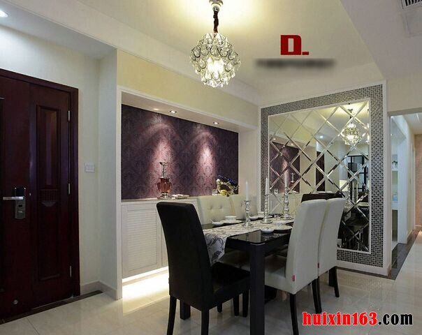 本套餐厅装饰中吊顶的设计比较具有个性,黑胡桃色的装饰面板做吊顶,在搭配上一款十分具有个性的铁艺吊灯,更是可以为空间增添一丝神秘感,墙壁上的仿古砖设计的也恰到好处,可以将美式风格的古典美彰显出来。