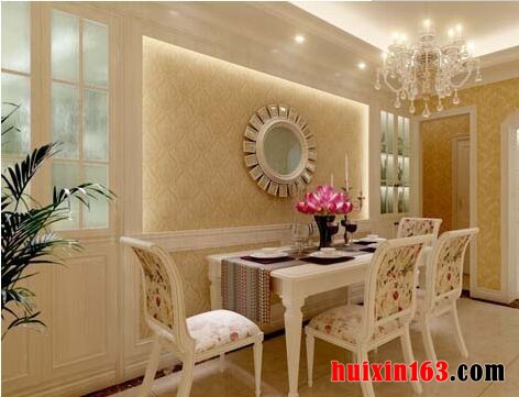 本套餐厅装饰中吊顶的设计比较具有个性,黑胡桃色的装饰面板做吊顶,在搭配上一款十分具有个性的铁艺吊灯,更是可以为空间增添一丝神秘感,墙壁上的仿古砖设计的也恰到好处,可以将美式风格的古典美彰显出来。
