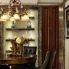 本套餐厅装饰中空间内的色彩搭配比较柔和,并没有艳丽的色彩却也并不缺乏个性,空间内的吊顶采用了装饰木方做造型,可以将中间的铁艺水晶吊灯衬托的更加精美,也为空间装饰增添了亮点。