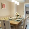 本套餐厅装饰中色彩搭配比较淡雅,平顶式的石膏板也可以显得十分简洁,平顶式的设计也可以凸显出一种大气感,为空间装饰增添两地那,中间的吊灯造型十分别致,也是空间装饰的一大亮点。