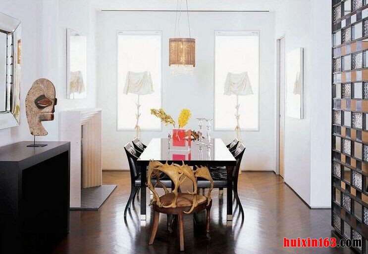 本套餐厅装饰中色彩搭配比较淡雅,平顶式的石膏板也可以显得十分简洁,平顶式的设计也可以凸显出一种大气感,为空间装饰增添两地那,中间的吊灯造型十分别致,也是空间装饰的一大亮点。