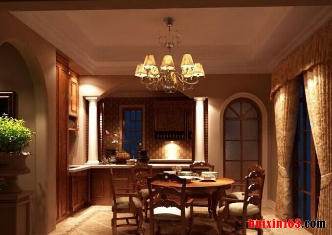 美式田园风格的装饰主要是倡导“回归自然”,与其说它是一种装修风格,倒不如说它是一种生活态度,我们每日都生活在喧嚣的城市中,如果回到家可以享受片刻宁静与清新,那便是我们理想中的生活。 本套餐厅装饰中色彩搭配比较淡雅,平顶式的石膏板也可以显得十分简洁,平顶式的设计也可以凸显出一种大气感,为空间装饰增添两地那,中间的吊灯造型十分别致,也是空间装饰的一大亮点。 更多»推荐家装效果图