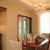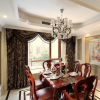 本套餐厅装饰中色彩搭配比较淡雅,平顶式的石膏板也可以显得十分简洁,平顶式的设计也可以凸显出一种大气感,为空间装饰增添两地那,中间的吊灯造型十分别致,也是空间装饰的一大亮点。