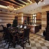 本套餐厅内的石膏板吊顶设计比价具有个性,圆形的设计虽然比较常见,但也并不缺乏设计感,凹槽的设计中搭配了一款造型十分简洁的金属吊灯,使整个空间都显得十分具有时尚气息。