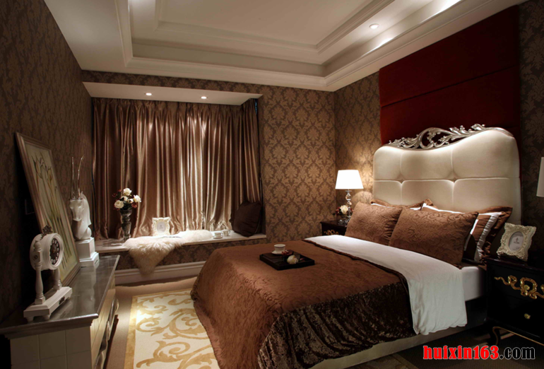 卧室整体装修风格以新古典的华丽优雅融合现代简约的时尚特性,让人感觉眼前一亮。以深色为作为空间的主体色调,再在空间中画龙点睛的缀入鲜亮色彩,优雅经典中也尽显时尚风采。新古典风格的融合,更显现出时尚优雅的风采。美满的居家空间是让居住在其中的每一个家庭成员皆能体会舒适与幸福,即便是家中的宠物小狗,亦能像其它家庭成员一样享有等同的居家感受。