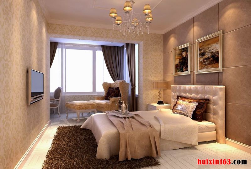 卧室整体装修风格以新古典的华丽优雅融合现代简约的时尚特性,让人感觉眼前一亮。以深色为作为空间的主体色调,再在空间中画龙点睛的缀入鲜亮色彩,优雅经典中也尽显时尚风采。新古典风格的融合,更显现出时尚优雅的风采。美满的居家空间是让居住在其中的每一个家庭成员皆能体会舒适与幸福,即便是家中的宠物小狗,亦能像其它家庭成员一样享有等同的居家感受。