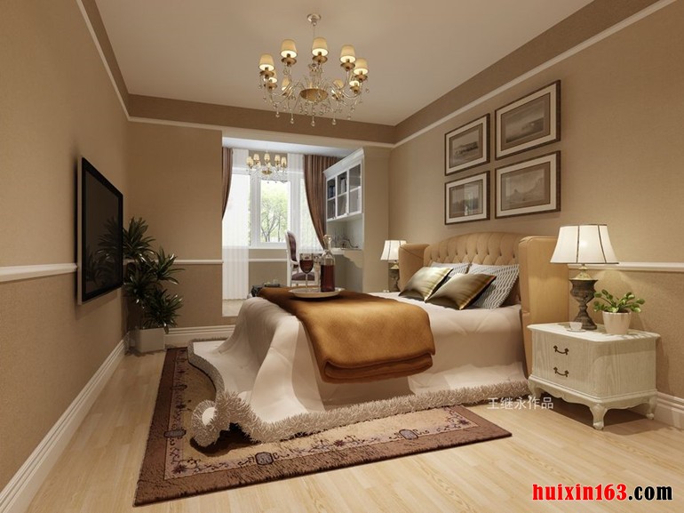 卧室整体装修风格以新古典的华丽优雅融合现代简约的时尚特性,让人感觉眼前一亮。以深色为作为空间的主体色调,再在空间中画龙点睛的缀入鲜亮色彩,优雅经典中也尽显时尚风采。新古典风格的融合,更显现出时尚优雅的风采。美满的居家空间是让居住在其中的每一个家庭成员皆能体会舒适与幸福,即便是家中的宠物小狗,亦能像其它家庭成员一样享有等同的居家感受。