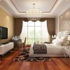 整套居室秉承了中式的风格,以典雅为调,设计稳重大胆,丝毫不显得浮躁,从侧面体现了主人的文化底蕴和浪漫情调,并且整个空间大量的留白处理,营造一个轻松惬意的居室环境,在卧室的装饰当中,采用双层石膏板粘贴吊灯,通过灯带和射灯的安装照射,将空间营造得比较明亮透彻,亮丽的地砖正好与吊顶上下相互呼应,简单的家具添置,让空间显得比较宽敞。