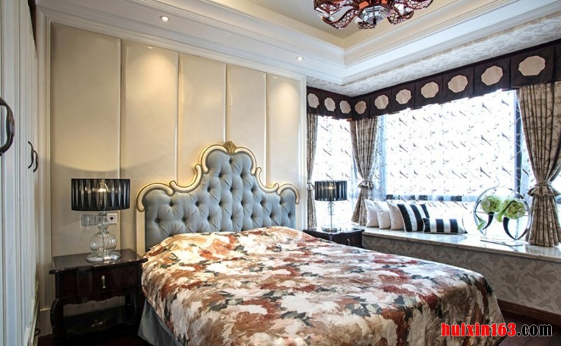 卧室吊顶的装饰是比较的简单,白色的装修材料,吊灯的灯光是表柔和的颜色,房间内的家具都是使用纯实木打造的,卧室内墙面使用的是深色的壁纸装饰的,灯上的饰品也是比较精致的,床头上挂了一个匾,随时提醒人们的态度。