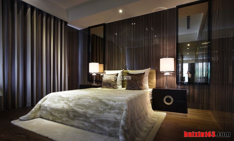 卧室吊顶的装饰是比较的简单,白色的装修材料,吊灯的灯光是表柔和的颜色,房间内的家具都是使用纯实木打造的,卧室内墙面使用的是深色的壁纸装饰的,灯上的饰品也是比较精致的,床头上挂了一个匾,随时提醒人们的态度。