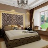 卧室地面采用地板装修,墙面采用墙纸装修,吊顶采用石膏板进行平顶吊顶,加以吸顶灯进行装饰,电视的背景墙木制花格起到点缀空间的作用,整体看起来典雅,有文化气息,传统但不落后的感觉!