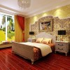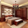 卧室地面采用地板装修,墙面采用墙纸装修,吊顶采用石膏板进行平顶吊顶,加以吸顶灯进行装饰,电视的背景墙木制花格起到点缀空间的作用,整体看起来典雅,有文化气息,传统但不落后的感觉!