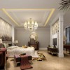 在本案例的装修当中,虽说是古典风格的装修,但也融入一些现代化的装饰元素,既有着现代简约的时尚感,也有着古典的木质韵味,双层石膏板粘贴吊顶的设计,在通过黄色光晕的衬托,营造出一种浪漫、温馨的氛围。