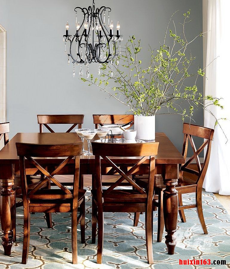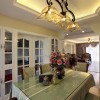 本套餐厅装饰中空间内的装饰色调主要是以白色为主,石膏板吊顶设计的比较具有个性,将中间的黑色铁艺吊灯衬托的十分精致,唯美的造型点缀了素雅的空间,使整体装饰显得十分靓丽。