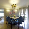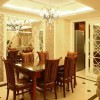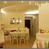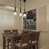 本套餐厅装饰的整体效果可以带给人们一种温馨感,空间内的石膏板吊顶设计比较柔和,将中间的铁艺吊灯衬托的更加别致,下方的白色餐桌上搭配了一款布艺桌布,使整个空间都充满了清新的色彩。