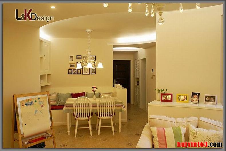 美式风格带给我们最深的印象应该就是粗犷,装饰风格比较富有个性,同时也可以在细节的设计中透露出时尚感,它的温馨展现在色调搭配上,整体可以带给人们一种温暖,舒适的感觉。 本套餐厅装饰的整体效果可以带给人们一种温馨感,空间内的石膏板吊顶设计比较柔和,将中间的铁艺吊灯衬托的更加别致,下方的白色餐桌上搭配了一款布艺桌布,使整个空间都充满了清新的色彩。 更多»推荐家装效果图