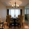 本套餐厅装饰的整体效果可以带给人们一种温馨感,空间内的石膏板吊顶设计比较柔和,将中间的铁艺吊灯衬托的更加别致,下方的白色餐桌上搭配了一款布艺桌布,使整个空间都充满了清新的色彩。