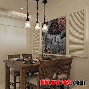 本套餐厅装饰的整体效果可以带给人们一种温馨感,空间内的石膏板吊顶设计比较柔和,将中间的铁艺吊灯衬托的更加别致,下方的白色餐桌上搭配了一款布艺桌布,使整个空间都充满了清新的色彩。
