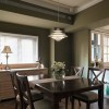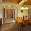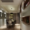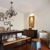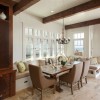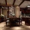 本套餐厅装饰中石膏板吊顶的设计比较大气,平顶式的设计将黑色的铁艺吊灯衬托的更加精致、唯美,下方的实木餐桌上搭配了棉麻的布艺桌旗,更是可以凸显出质感与设计主题。