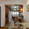 本套餐厅装饰中石膏板吊顶的设计比较大气,平顶式的设计将黑色的铁艺吊灯衬托的更加精致、唯美,下方的实木餐桌上搭配了棉麻的布艺桌旗,更是可以凸显出质感与设计主题。