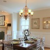 本套餐厅装饰的整体效果可以带给人们一种大气感,空间内的石膏板吊顶上添加了实木做造型设计,硬朗的线条却搭配出了一种设计感,下方的实木餐桌也因此为显得更加具有古典气息。