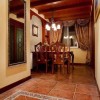 本套餐厅装饰的整体效果可以带给人们一种大气感,空间内的石膏板吊顶上添加了实木做造型设计,硬朗的线条却搭配出了一种设计感,下方的实木餐桌也因此为显得更加具有古典气息。