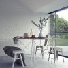 本套餐厅装饰的整体效果可以带给人们一种大气感,空间内的石膏板吊顶上添加了实木做造型设计,硬朗的线条却搭配出了一种设计感,下方的实木餐桌也因此为显得更加具有古典气息。