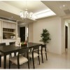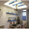 本套餐厅装饰中空间内的色调搭配主要是以白色为主,石膏板吊顶则采用了平顶式的设计,中间搭配了一款铁艺灯饰,白色的灯罩在灯光的照射下会显得更加柔和,也会为空间增添一丝朦胧的美感。