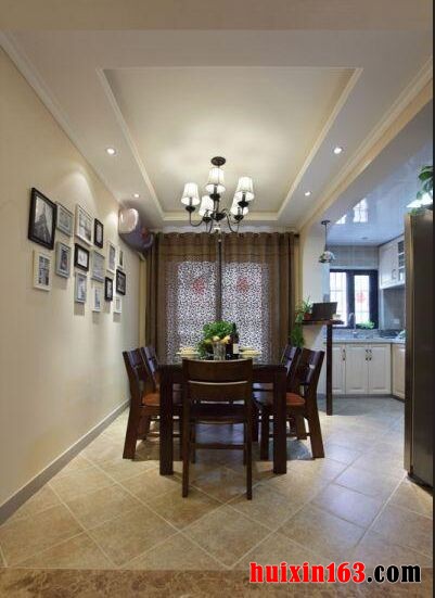 美式风格的家具在不同角度下会产生不同的光感,它并不是依靠金属材质与灯光搭配而达到的效果,而是通过它的雕刻花纹并不需要金属点缀便能达到此效果,可以使空间装饰显得更加自然,精致。 本套餐厅装饰中空间内的色彩搭配比较柔美,暖黄色的墙壁搭配上灯光的照射更是使空间充满了温馨的色彩,平顶式的石膏板吊顶上安装了一盏黑色的铁艺吊灯,在白色灯光的照射下黑色铁艺吊灯可以显得更加精美、别致。 更多»推荐家装效果图