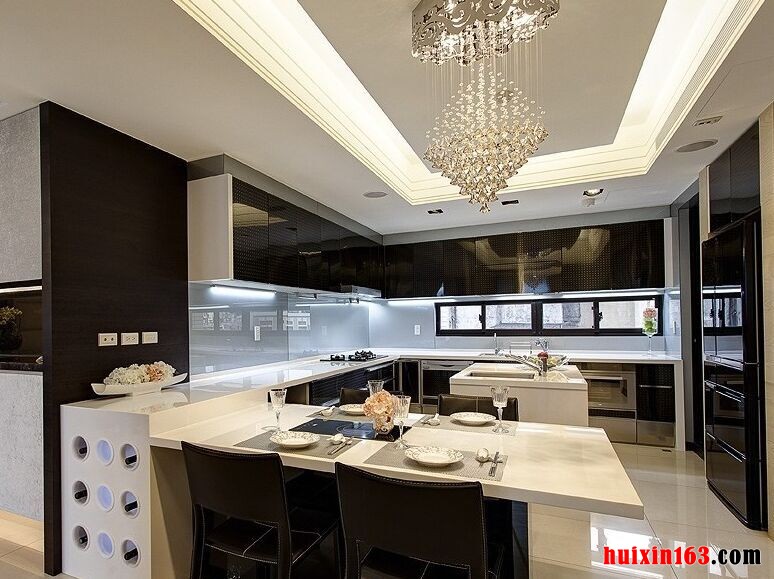 本套餐厅装饰中餐厅内部的整体家居搭配以及造型设计都比较具有自然气息,空间内的石膏板吊顶上添加了实木做造型可以将中间的白色水晶衬托的更加精美,富有华贵的气息,点缀空间装饰亮点。