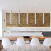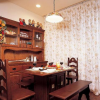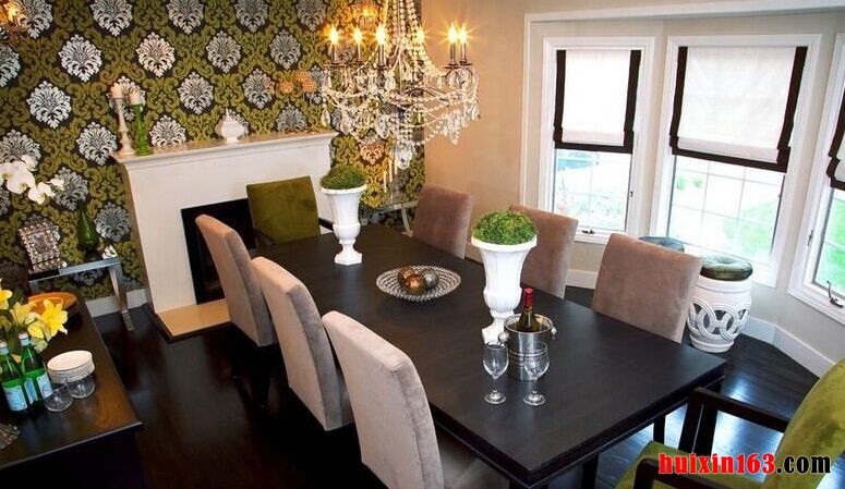 本套餐厅装饰中餐厅内部的整体家居搭配以及造型设计都比较具有自然气息,空间内的石膏板吊顶上添加了实木做造型可以将中间的白色水晶衬托的更加精美,富有华贵的气息,点缀空间装饰亮点。