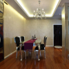 本套餐厅装饰的整体效果中带有一丝华丽的气息,空间内的石膏板吊顶中间安装了一盏华丽的水晶灯饰,将下方的白色餐桌衬托的更加别致,同时餐桌搭配的皮质座椅也凸显出了质感。