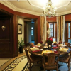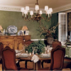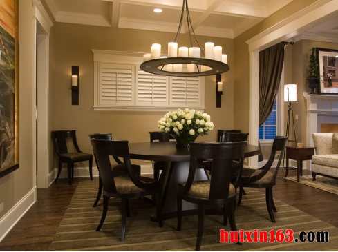 本套餐厅装饰中可以看出美式风格的装饰特点,空间内的装饰比较具有自有气息,无拘无束的设计可以将别致的设计感凸显出来,实木的餐桌框架上搭配了石材台面,更是可以将设计感凸显的淋漓尽致。
