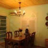 本套餐厅装饰中可以透露出一丝清新的味道,空间内的色彩搭配比较柔和,石膏板吊顶上的设计添加了实木做造型设计可以将中间的黑色铁艺吊灯衬托的更加别致,同时也凸显出了空间装饰的亮点。