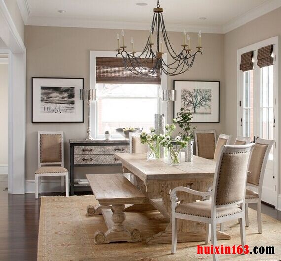 本套餐厅装饰中可以透露出一丝清新的味道,空间内的色彩搭配比较柔和,石膏板吊顶上的设计添加了实木做造型设计可以将中间的黑色铁艺吊灯衬托的更加别致,同时也凸显出了空间装饰的亮点。