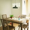 本套餐厅装饰中可以透露出一丝清新的味道,空间内的色彩搭配比较柔和,石膏板吊顶上的设计添加了实木做造型设计可以将中间的黑色铁艺吊灯衬托的更加别致,同时也凸显出了空间装饰的亮点。