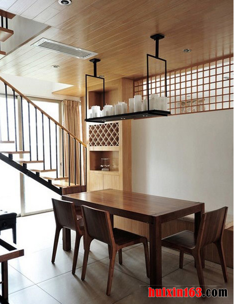 本套餐厅装饰中可以透露出一丝清新的味道,空间内的色彩搭配比较柔和,石膏板吊顶上的设计添加了实木做造型设计可以将中间的黑色铁艺吊灯衬托的更加别致,同时也凸显出了空间装饰的亮点。
