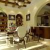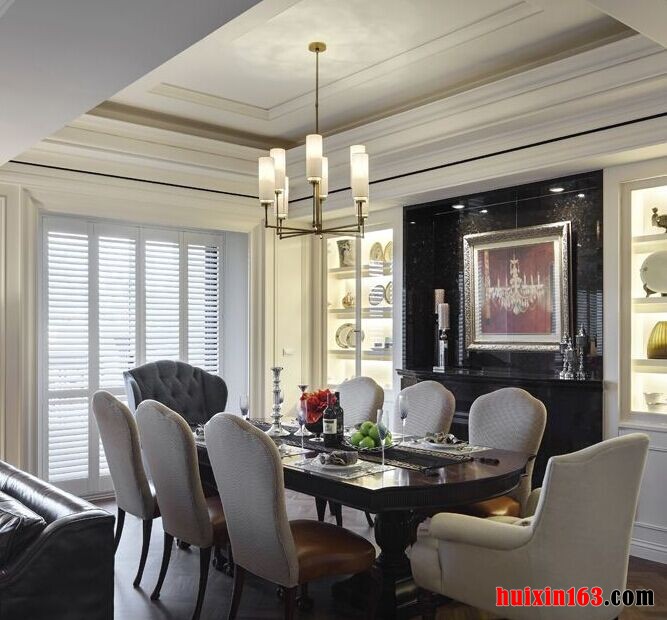 美式田园风格的居室装修都是比较具有个性的,牛仔在房间内的布局也是一大特点,一般会应用在沙发家具上,精致的纹理凸显出一丝自然气息,也会为空间装饰带来一丝清新的味道。 本套餐厅装饰中空间内的主要色调搭配比较偏白色,石膏板吊顶的设计则采用了平顶式的设计,并在中间搭配了一款金属材质的吊灯,精致的造型却凸显出了设计感,黑色的线条勾勒出的则是一种精致与唯美。 更多»推荐家装效果图