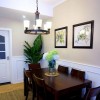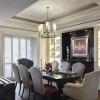 本套餐厅装饰中空间内的主要色调搭配比较偏白色,石膏板吊顶的设计则采用了平顶式的设计,并在中间搭配了一款金属材质的吊灯,精致的造型却凸显出了设计感,黑色的线条勾勒出的则是一种精致与唯美。
