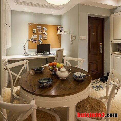 本套餐厅装饰中空间内的主要色调搭配比较偏白色,石膏板吊顶的设计则采用了平顶式的设计,并在中间搭配了一款金属材质的吊灯,精致的造型却凸显出了设计感,黑色的线条勾勒出的则是一种精致与唯美。