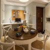 本套餐厅装饰中空间内的主要色调搭配比较偏白色,石膏板吊顶的设计则采用了平顶式的设计,并在中间搭配了一款金属材质的吊灯,精致的造型却凸显出了设计感,黑色的线条勾勒出的则是一种精致与唯美。