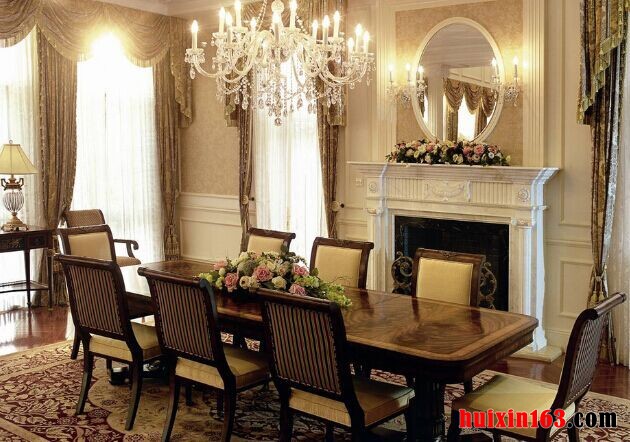 本套餐厅装饰中空间内的主要色调搭配比较偏白色,石膏板吊顶的设计则采用了平顶式的设计,并在中间搭配了一款金属材质的吊灯,精致的造型却凸显出了设计感,黑色的线条勾勒出的则是一种精致与唯美。