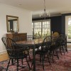 本套餐厅装饰中整体的搭配效果可以使空间充满华丽的气息,空间内的石膏板吊顶中间安装了一盏华美的水晶灯饰,精美的造型图案可以点缀整个空间,下方的实木餐桌上搭配了一款白色的蕾丝桌布,更为空间装饰增添了亮点。